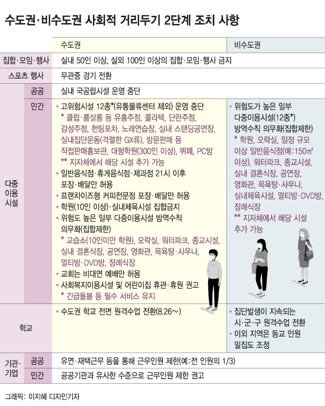 2.5단계 격상은 경제에 큰 타격을 입히기에, 단계 격상 없이 2.5단계, 3단계 방역수칙 가운데 일부를 가져다 쓸 수도 있다.